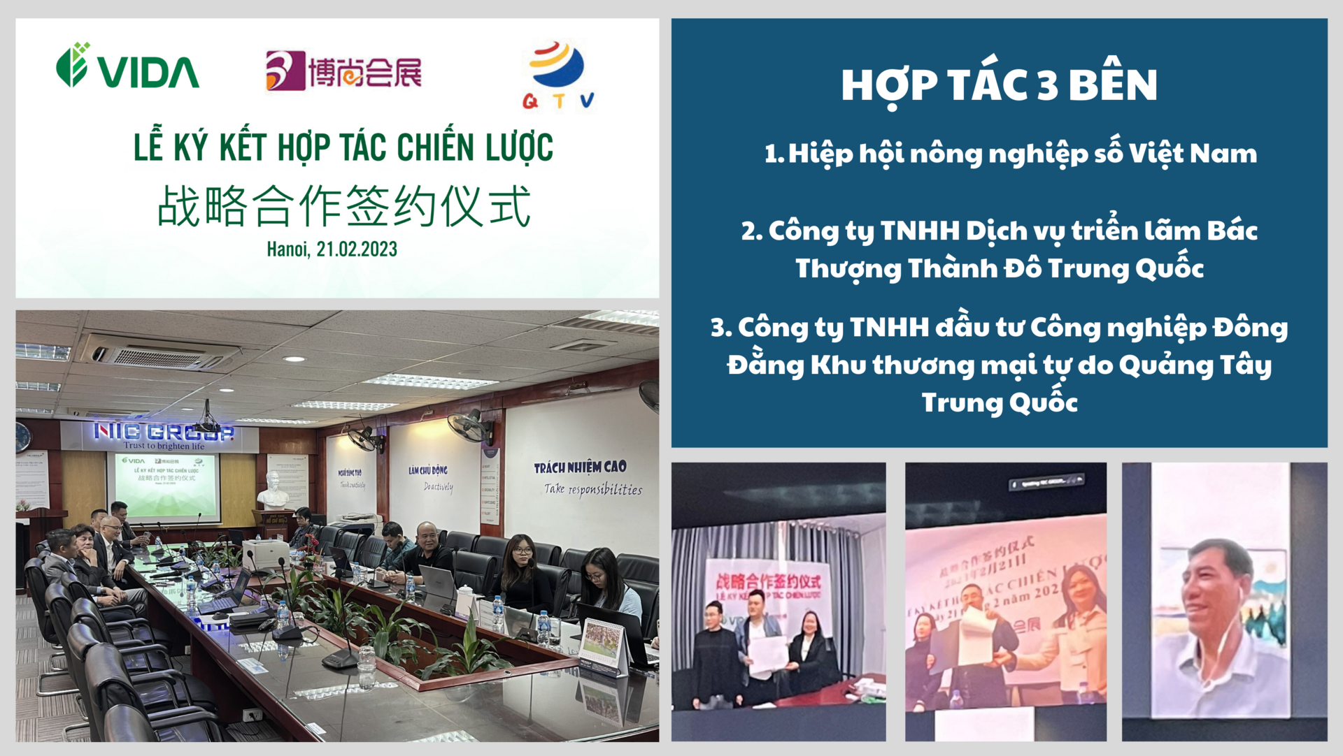 Chương trình có sự tham gia của các đại diện đến từ Hiệp hội Nông nghiệp số Việt Nam (VIDA), Công ty TNHH Dịch vụ triển lãm Bác Thượng Thành Đô Trung Quốc và Công ty TNHH đầu tư Công nghiệp Đông Đằng Khu thương mại tự do Quảng Tây Trung Quốc.